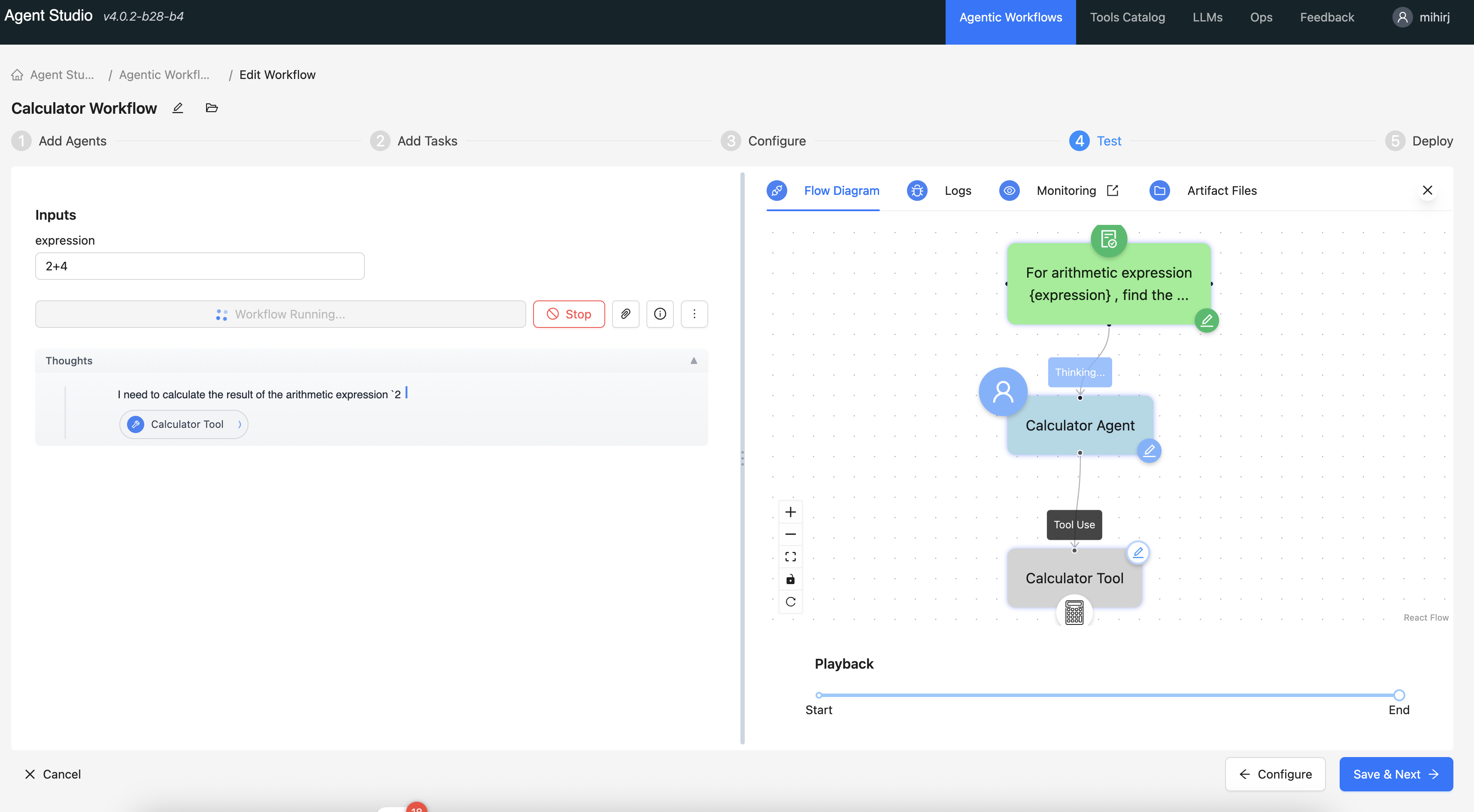 Tools Playground or stop the workflow after Deploying it.