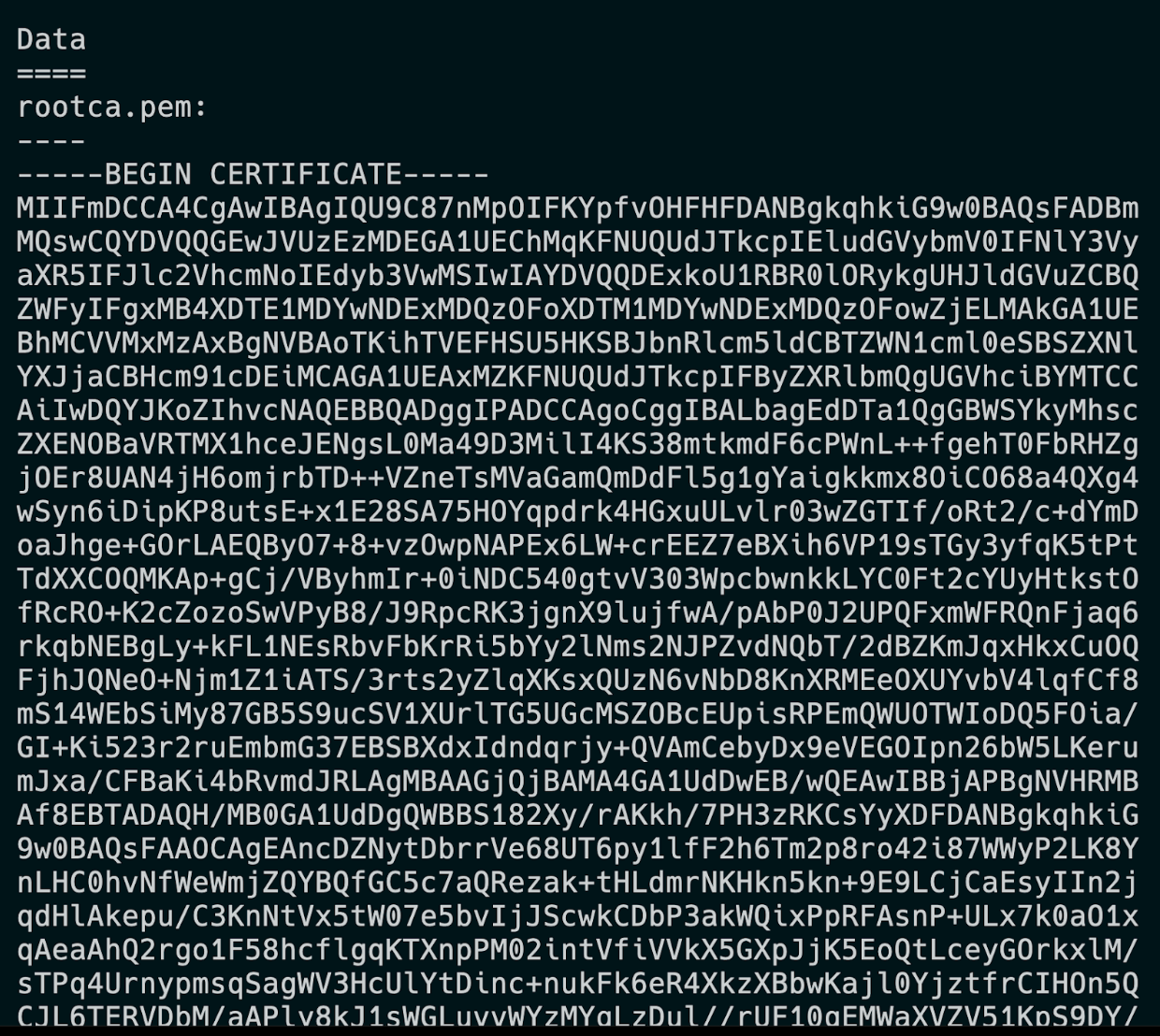 rootca.pemoutput from the command.kubectl describe cm jwks-rootca -n mlx