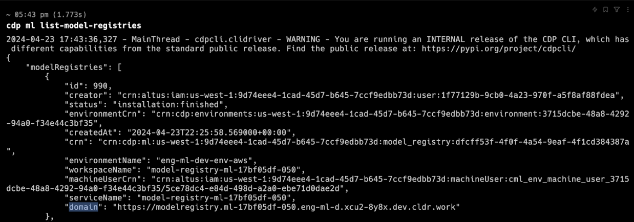 The domain of the new Cloudera AI Registry is contained in thelist-model-registriesresponse: