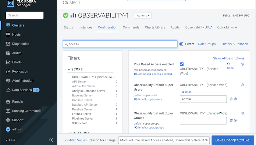OBSERVABILITY Default Super Users property,