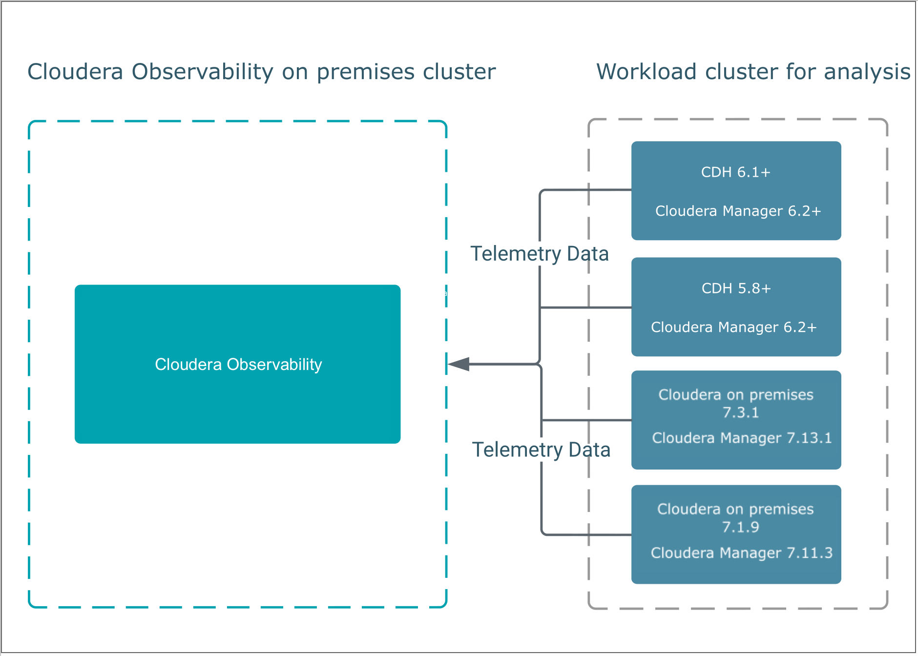 | Cloudera 7.x clusters | Cloudera Base on premises 7.0.3 or later clusters | Cloudera Manager version 7.1.1 or later |