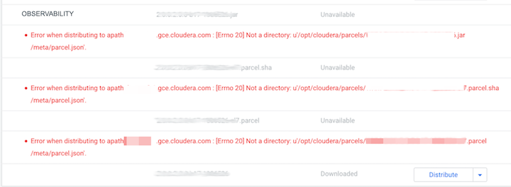 Cloudera Management Server host causes distribution and activation issues. The Cloudera Observability on premises installation parcel files must reside in the