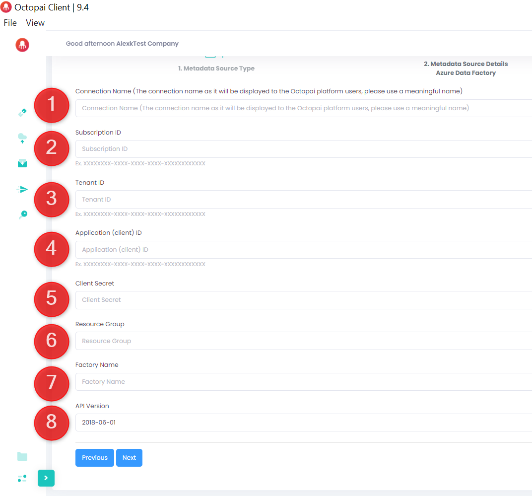 Follow these instructions to configure the metadata source in Azure Data Factory.