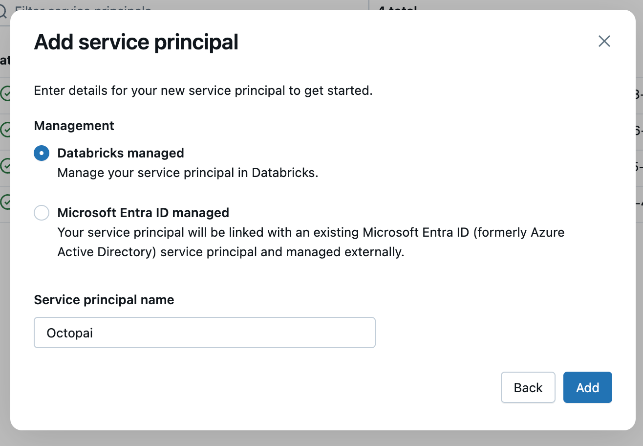 For environments using Unity Catalog, you must configure a service principal. This is because Cloudera Octopai must authenticate using an identity with permission to query Unity Catalog system lineage tables.
