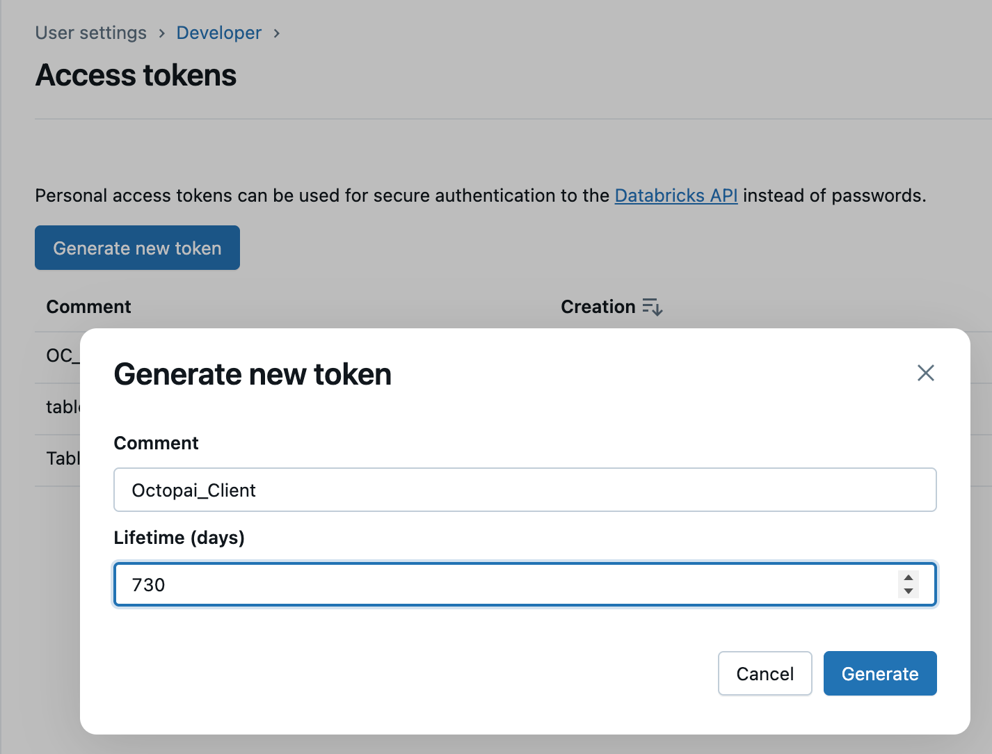 Learn about the authentication methods available for connecting Cloudera Octopai Data Lineage to Databricks, including machine-to-machine authentication using service principals and user authentication using Personal Access Tokens.
