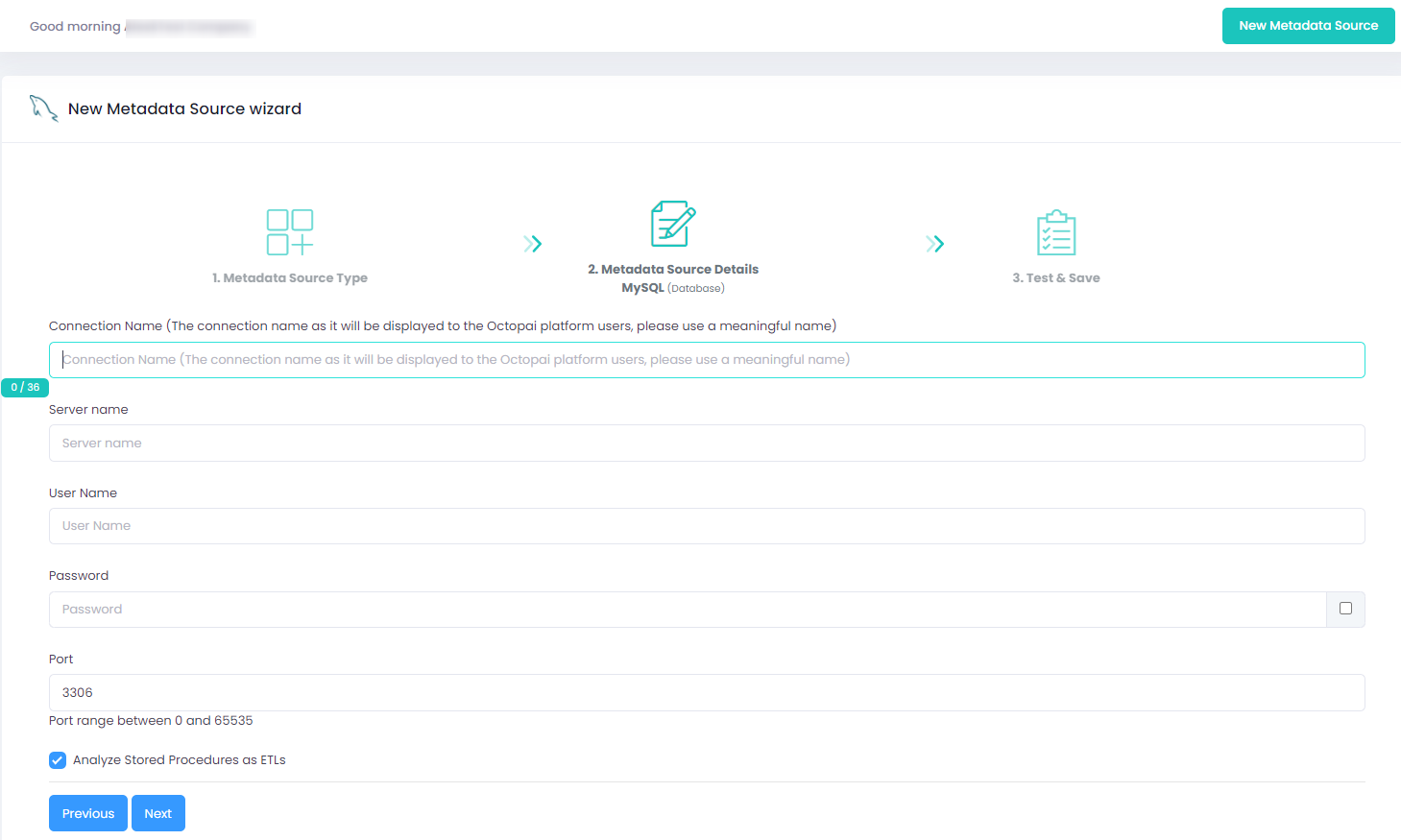 Setting up MySQL Metadata Source