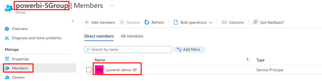 Create Security Group: We will need to create a group in https://portal.azure.com/ under groups OR ADD your Service Principal to an existing group.