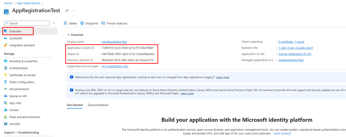 - Application (Client) ID - Available in the 'App registrations' section under the application you created.