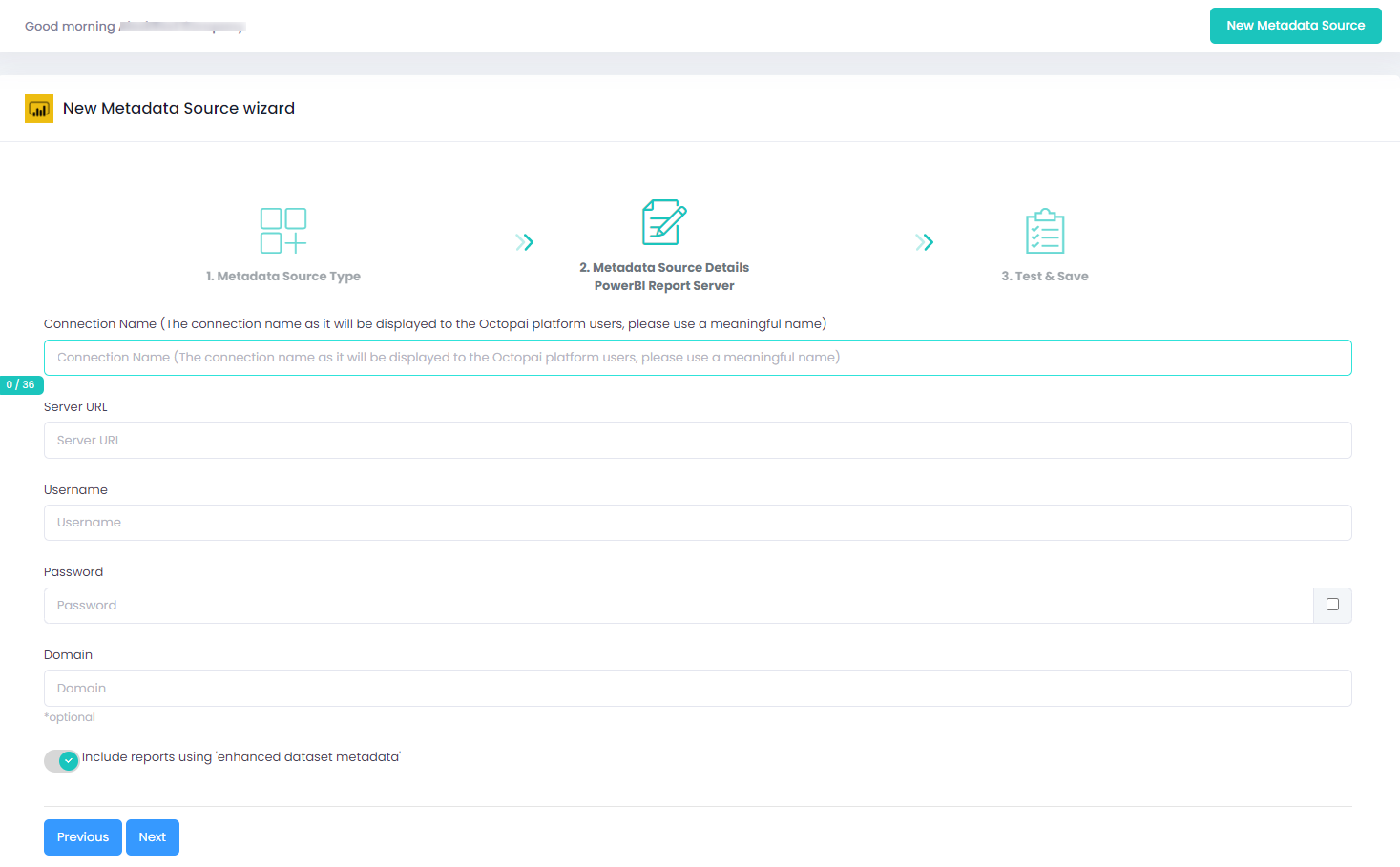 - Connection Name - Give a meaningful name, as it will be displayed to the Cloudera Octopai platform users.