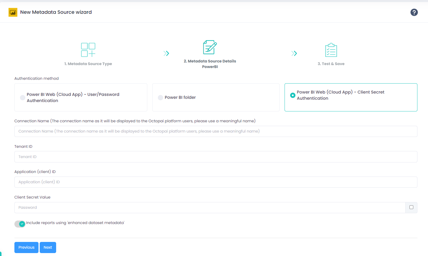 - Power BI Web (Cloud App) - Client Secret Authentication (Open the Power BI Settings for Cloud Version Guide).