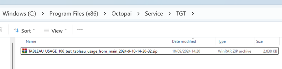 - Inside the TGT folder, you will find a .zip file named after the Tableau Connector .