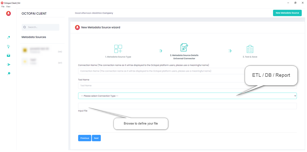 Setting up Universal Connector Metadata Source