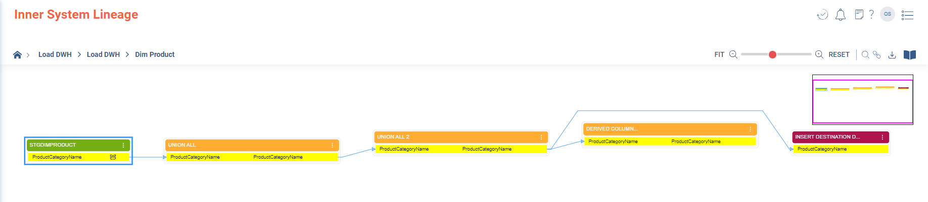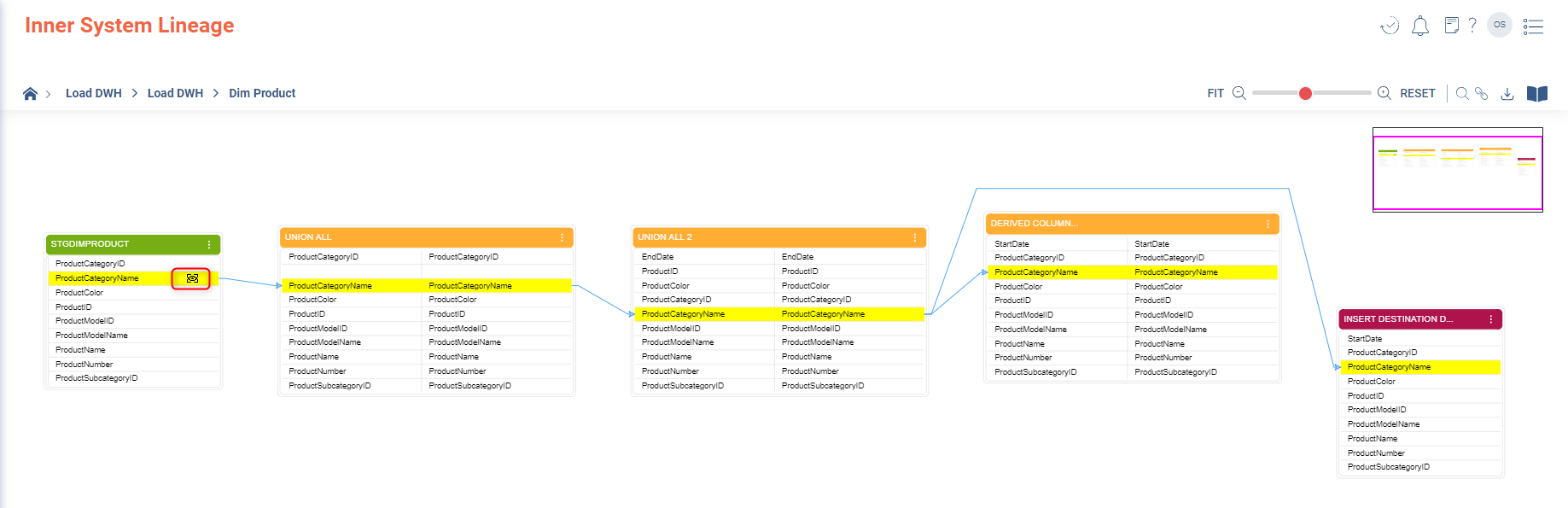 - Large Scale Lineage Maps: For extensive inner system lineage maps, the focus features enhance the user's ability to navigate and analyze complex data relationships, from the physical through the semantic and onto the presentation layer, from source, data source through transformations and onto the target.