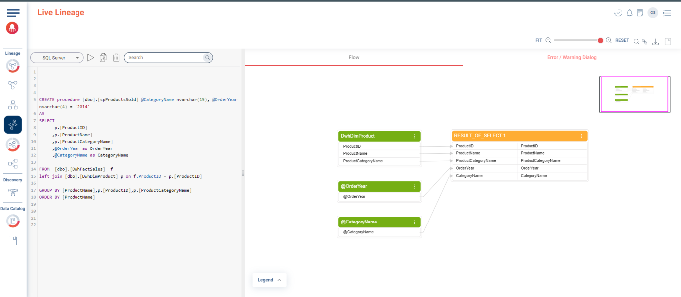 The Live Lineage Visualizer empowers teams to streamline change management by providing real-time visibility into SQL scripts. Users can simulate changes, pinpoint syntax errors, and validate migrations before deployment.