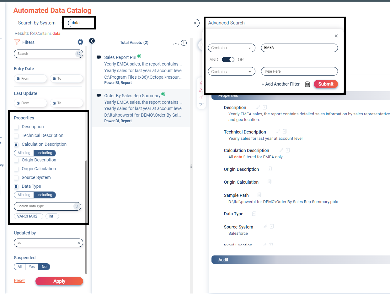 These enhanced features are designed to offer data professionals a more intuitive, efficient, and detailed approach to managing and analysing asset properties and audit fields within the Technical Data Catalog.