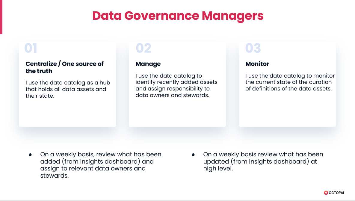Overview of the primary personas who collaborate inside the Knowledge Hub.