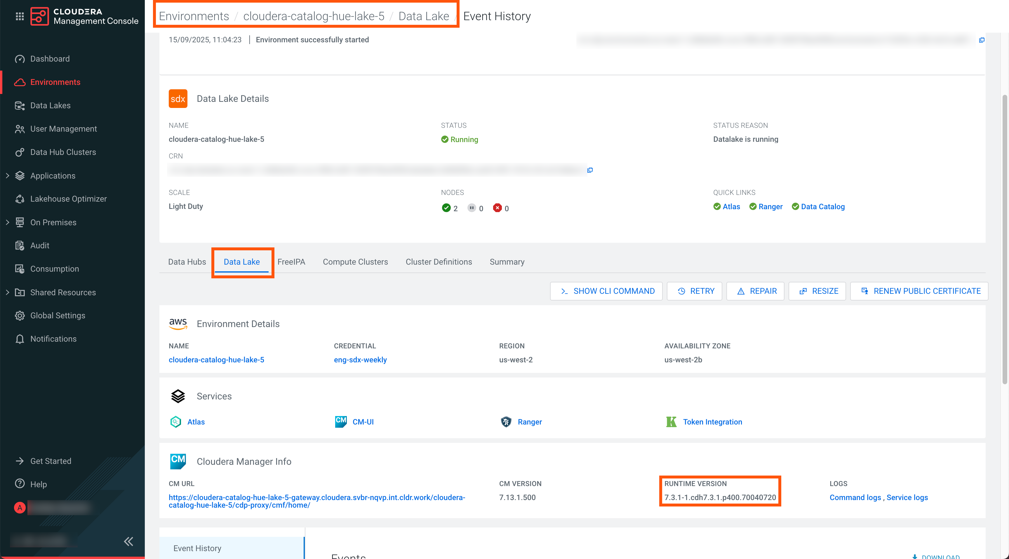 Ensure that your Cloudera Runtime is of 7.3.1.400 version or later. (Build number