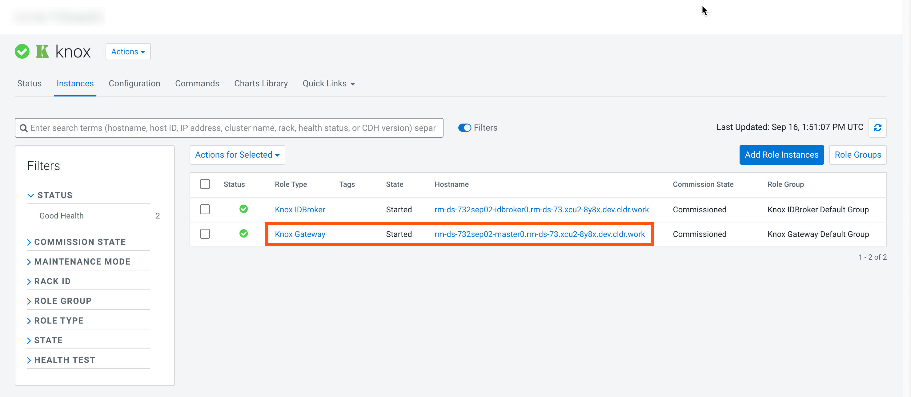 - To get the Knox hostname, go to , and copy the hostname for the Knox Gateway role.