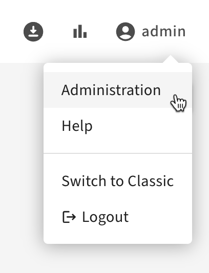 - To access the Atlas Administration features, choose Administration from the user menu in the top right of the Atlas window. Users need administrator privileges to access the Administration panel features.