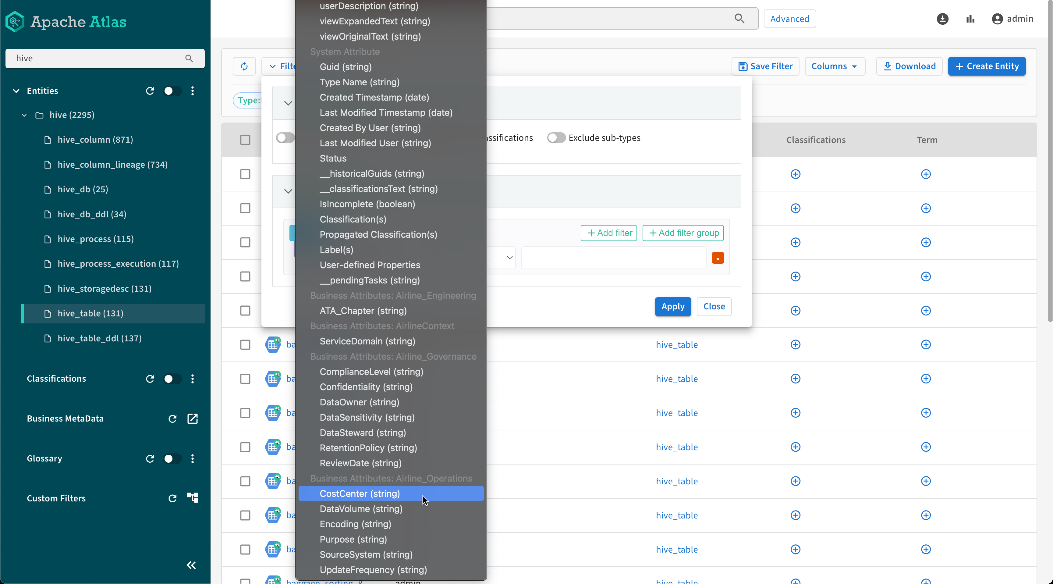Searching for entities using Business Metadata attributes