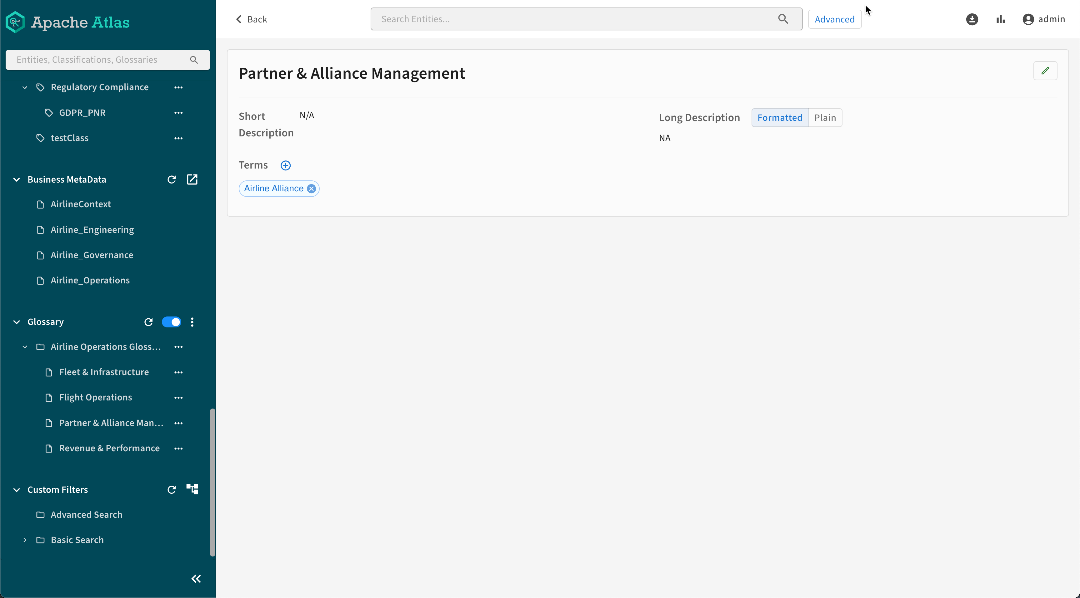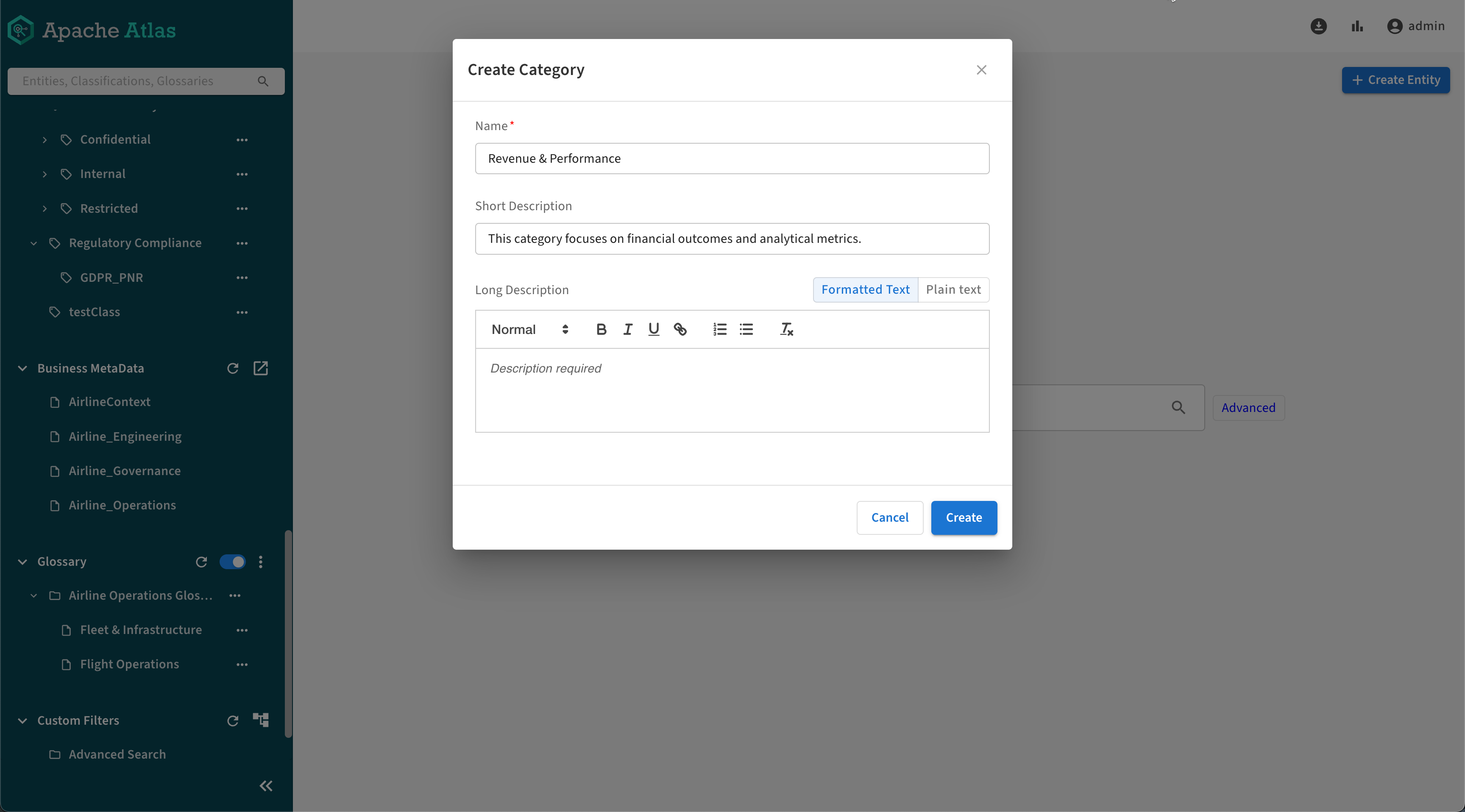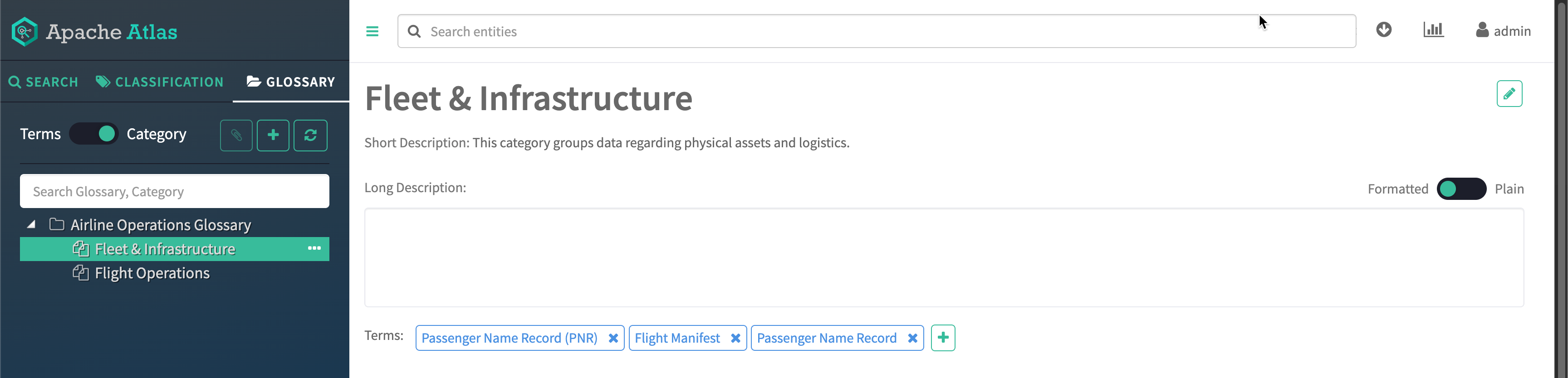 Categories form the layers in a hierarchy so you can organize glossary terms to make them intuitive to find.