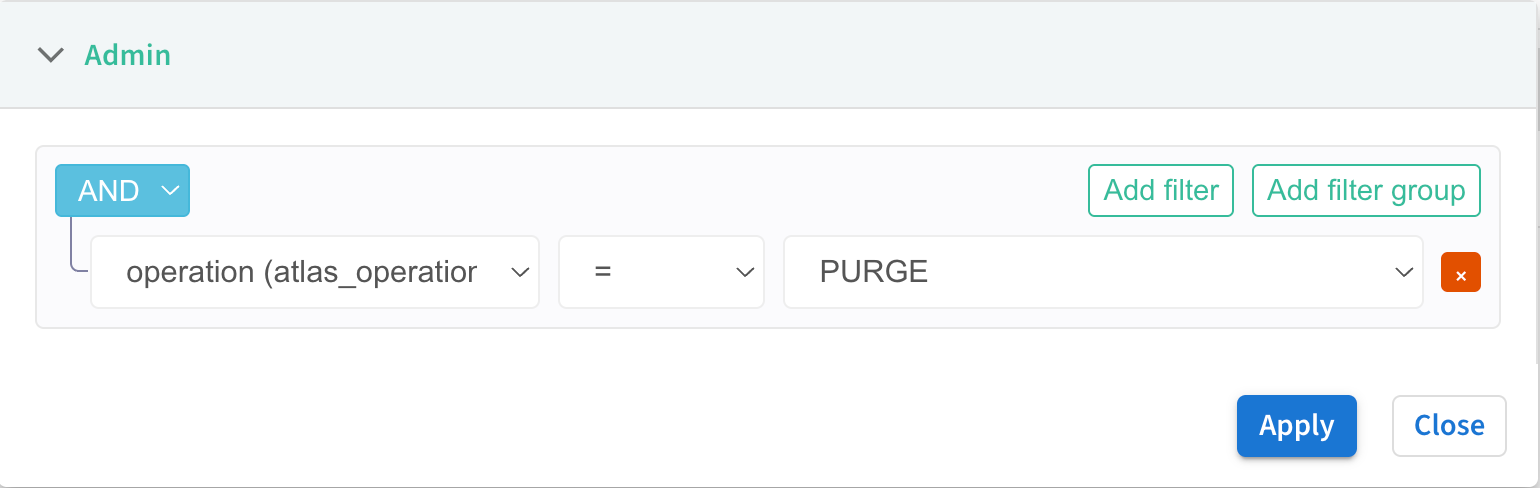 Operation = PURGEto show only purge audits. - Set