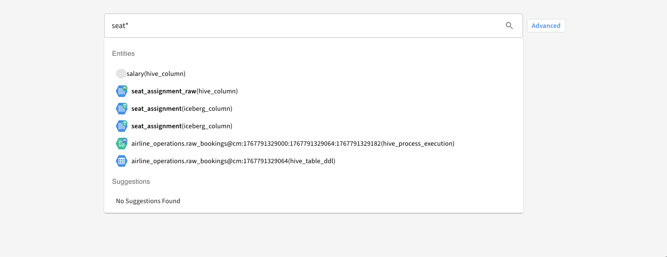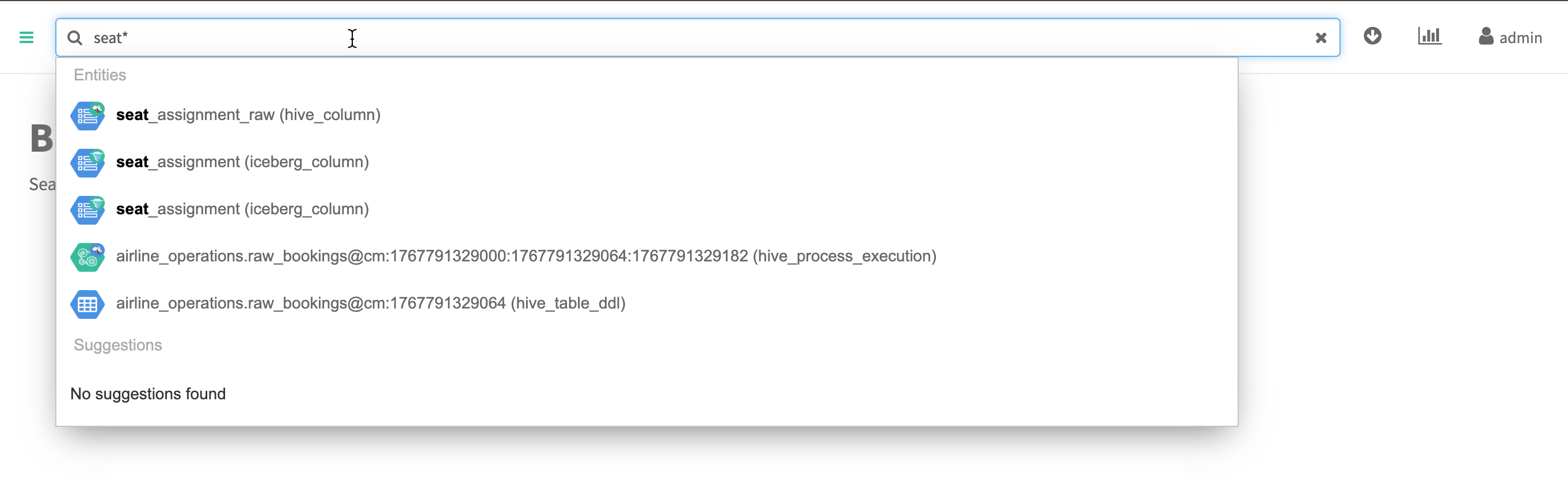 You can directly add airline_operations.raw_booking@cm in the search bar instead of qualifiedName="airline_operations.raw_booking@cm".