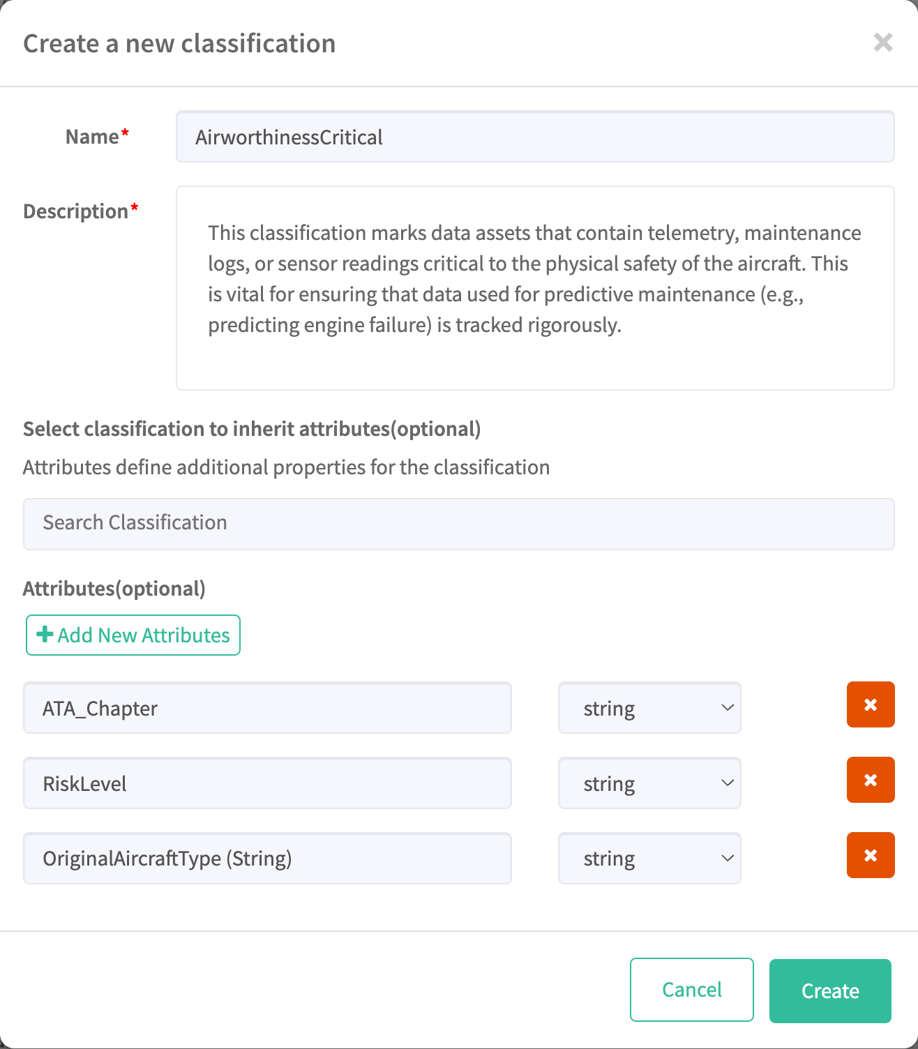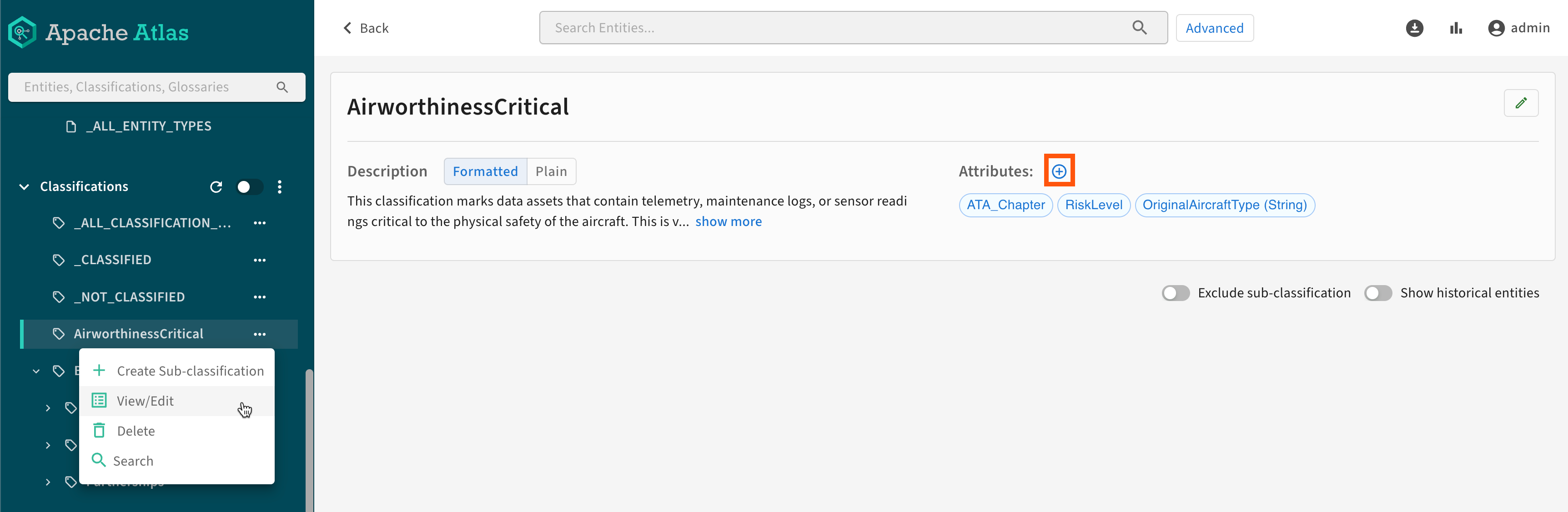 You can also add attributes to an existing classification. Select the classification in the list, then click the plus button next to Attributes.