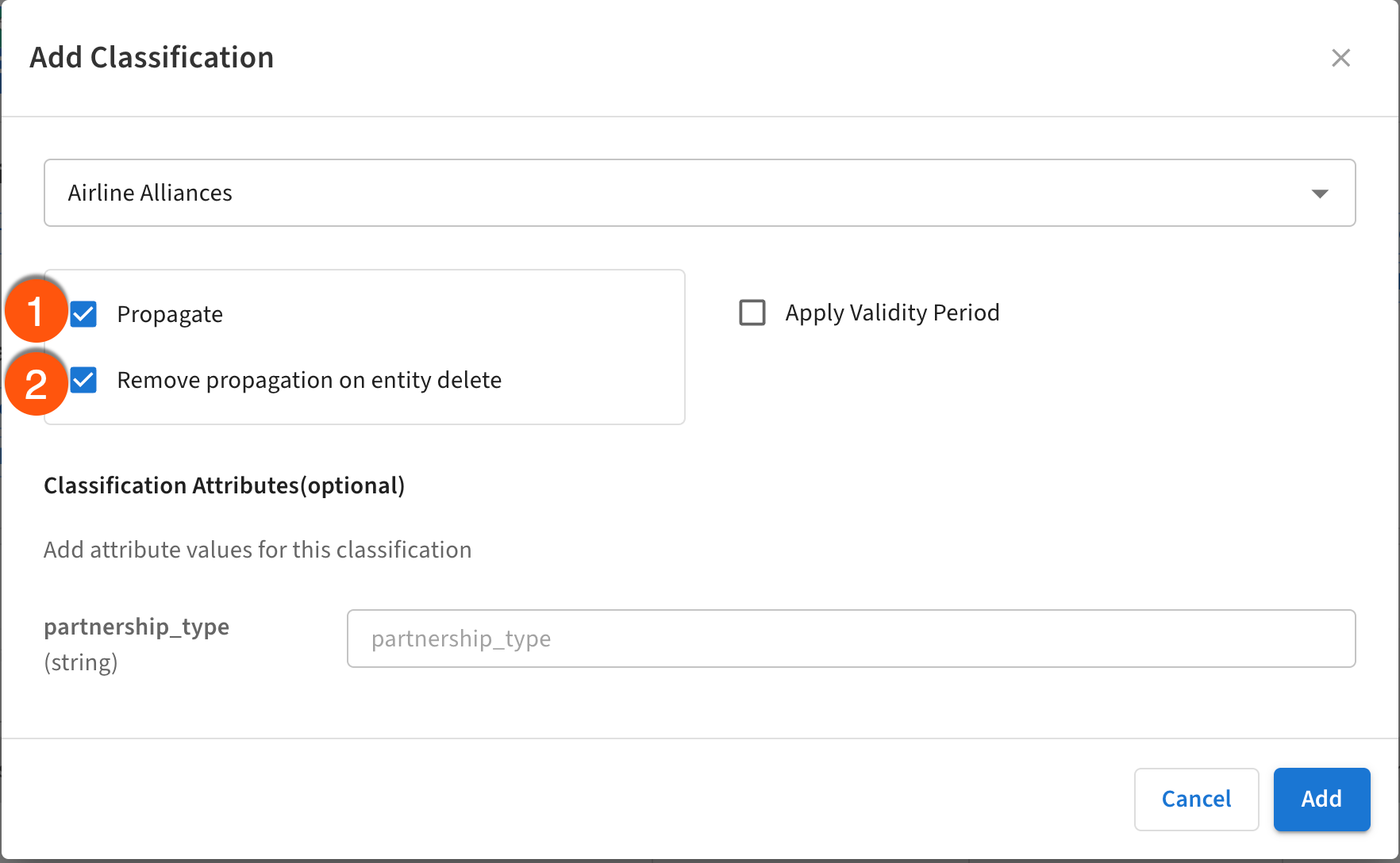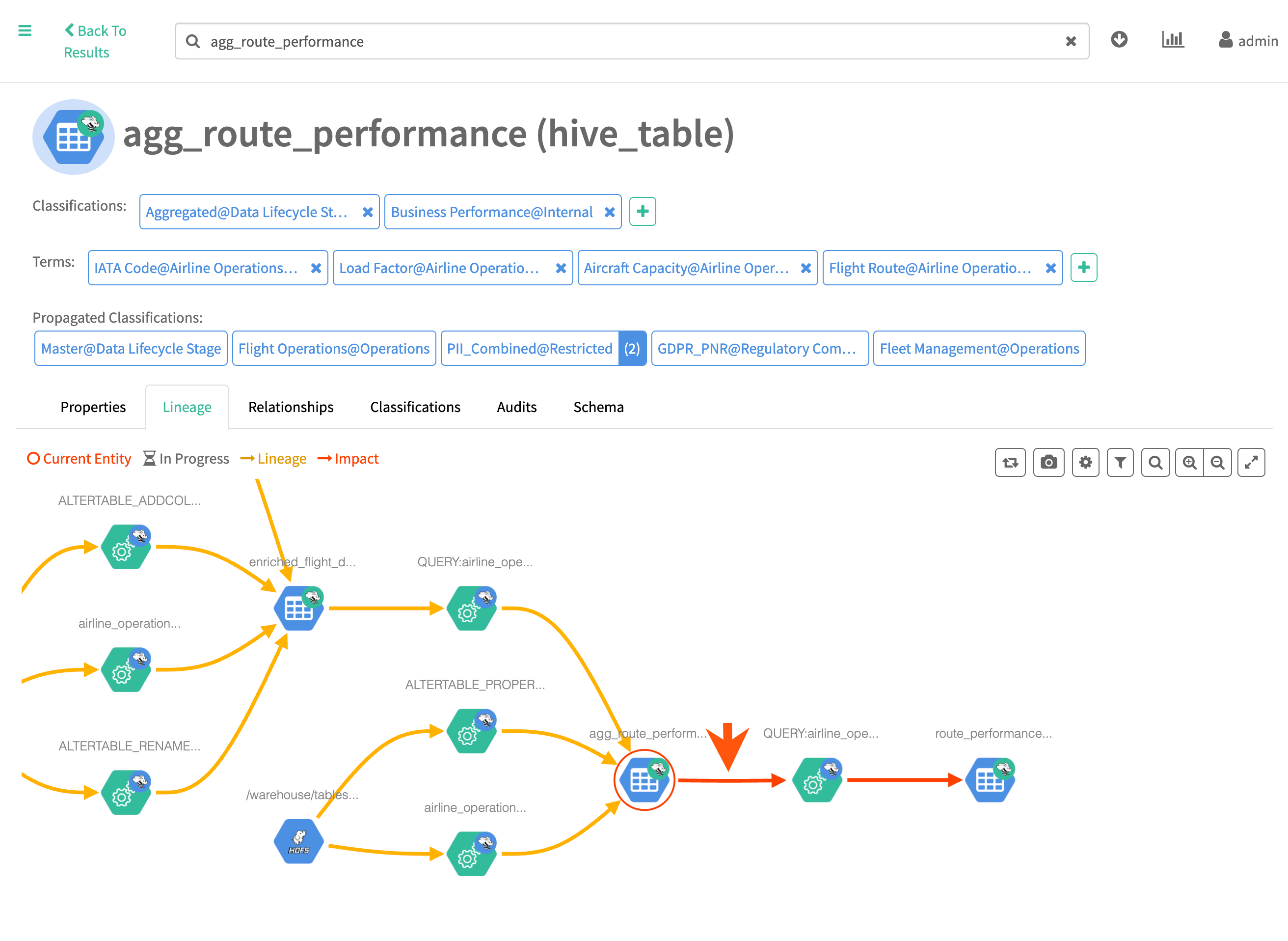 When you look at the classifications assign to an entity, you can see which classifications where originally assigned to this entity and which were propagated here through lineage. From the Classifications tab, you can do the following: