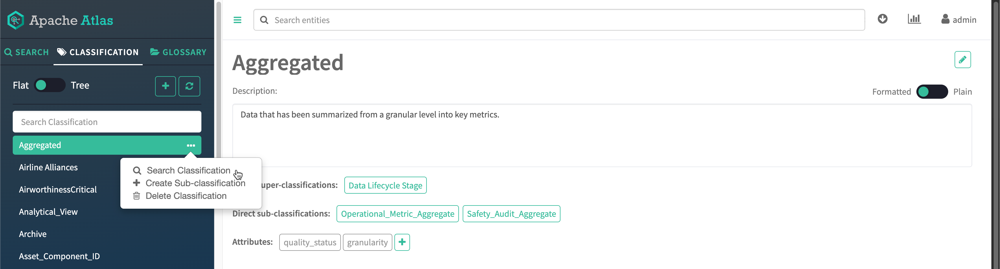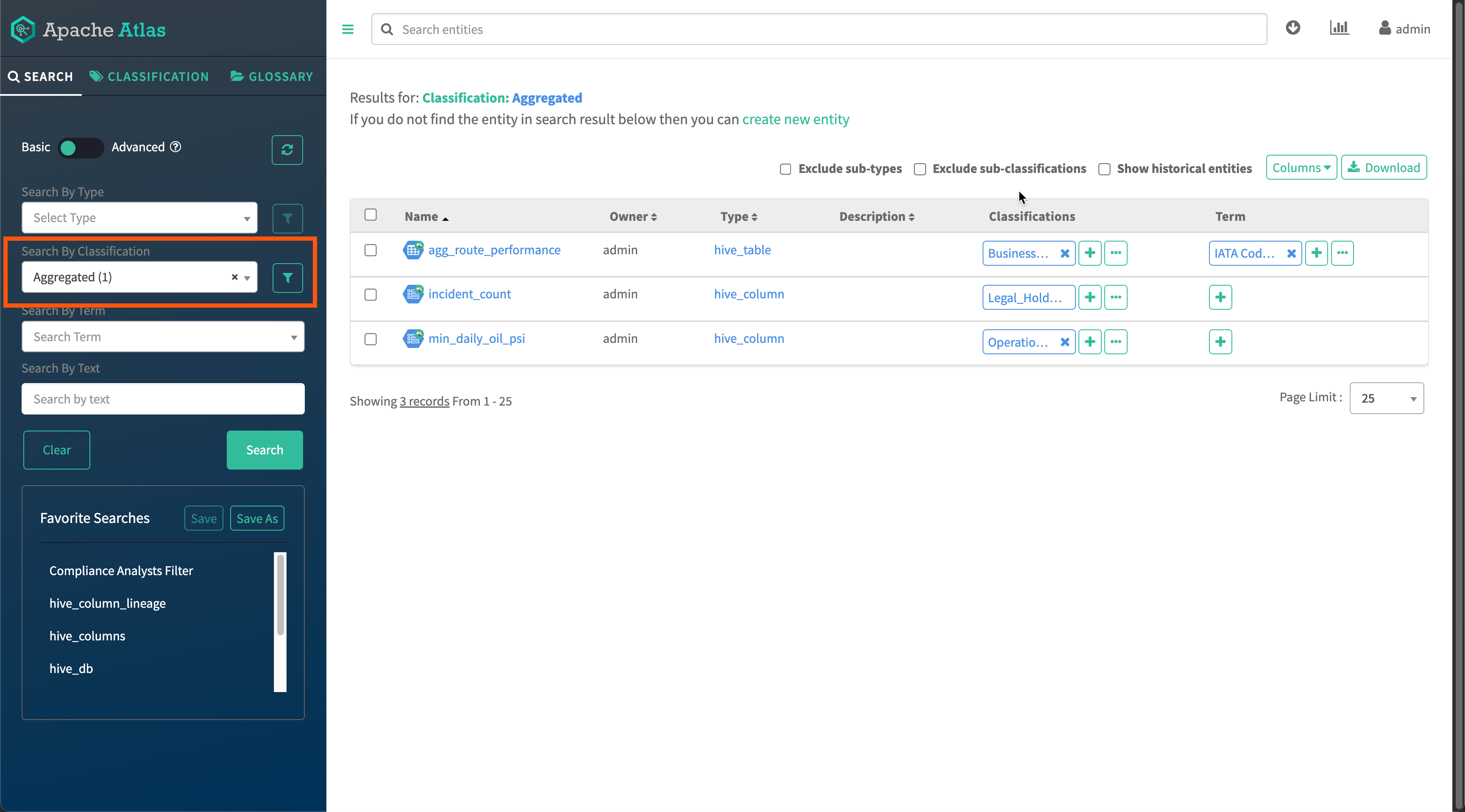 The Atlas dashboard makes it easy to find entities that you've tagged with classifications. In the left navigation pane, go to the Classification and select the classification you want. You can refine your search results by adding criteria on the Search tab (Basic search).