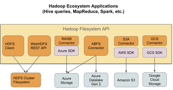 The cloud object store connectors are implemented as individual Hadoop modules. The libraries and their dependencies are automatically placed on the classpath.