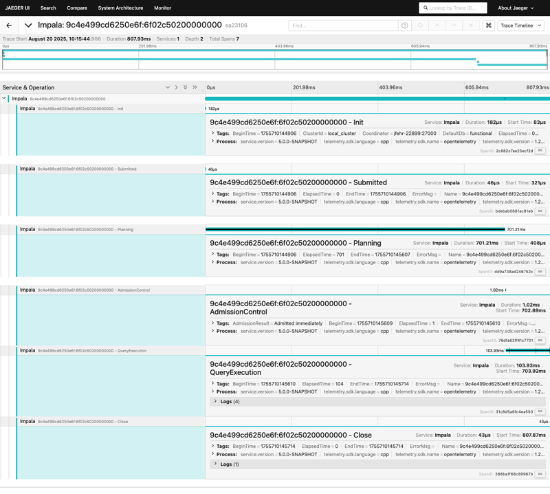 Analyzing these spans helps you identify performance bottlenecks and understand the entire lifecycle of a query within your Impala Virtual Warehouse.