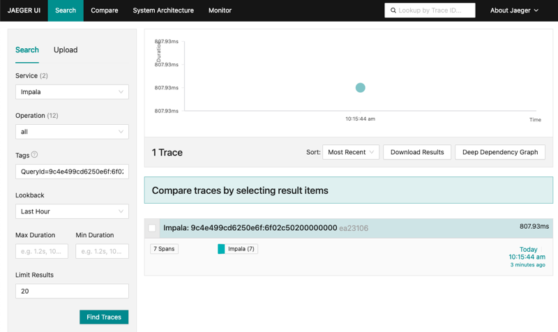 Learn how to use Jaeger to visualize the telemetry data from a simple Impala query.
