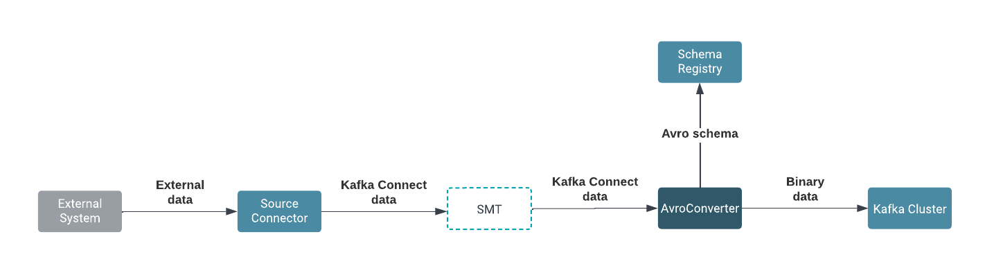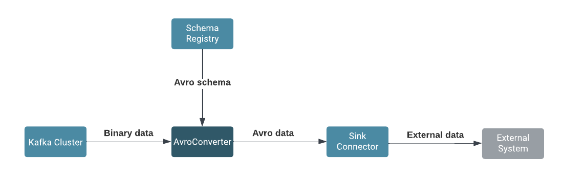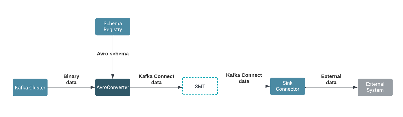 Schema Registry. The data is converted from Avro format to the Kafka Connect internal data