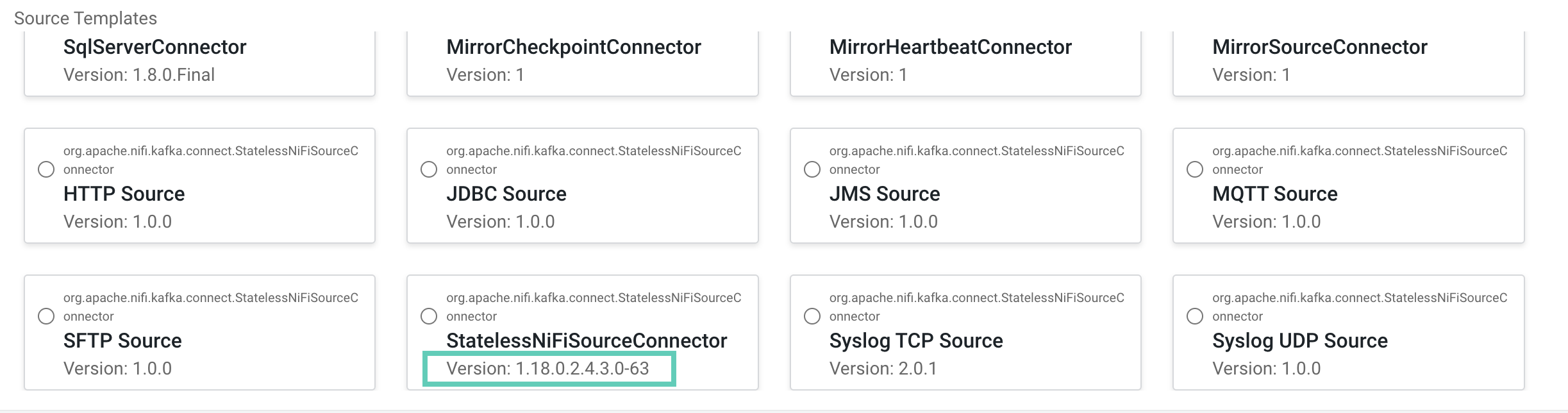 StatelessNiFiSinkConnector cards. The version is located