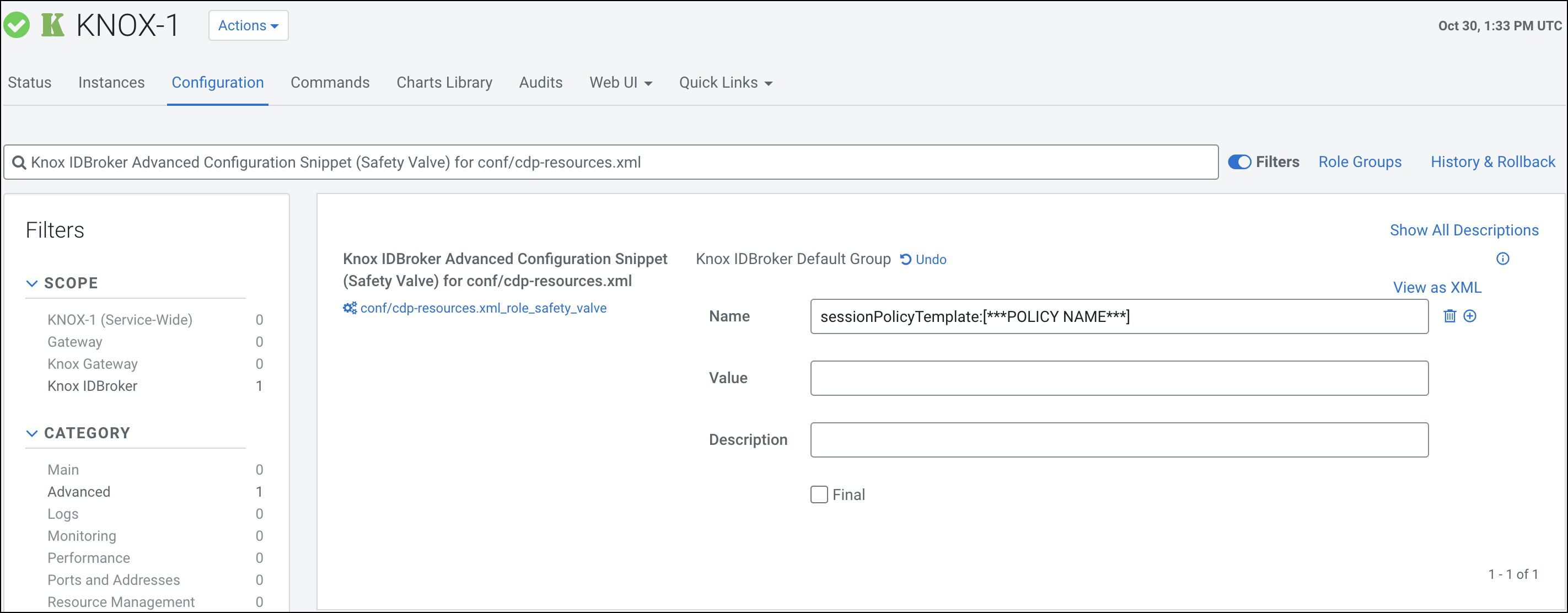 Configure IDBroker session policies using Cloudera Manager to manage them centrally across IDBroker instances. This ensures that the policy definitions are persistent across restarts, upgrades, and other events.