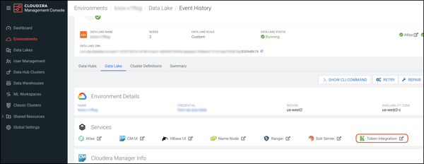 - Navigate to the Cloudera Management Console service > Data Lakes > (Your