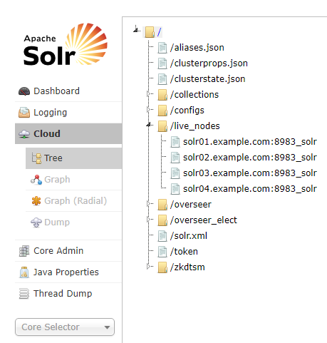 1. Optional: If you want to add a replica to a particular node, review the contents of the live_nodes directory on ZooKeeper to find all nodes available to host replicas. Open the Solr Administration User interface, click Cloud > Tree > live_nodes.