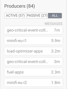 On the Overview page, producers are referred to as active or passive. Producers are active when they are producing messages over a designated time period.