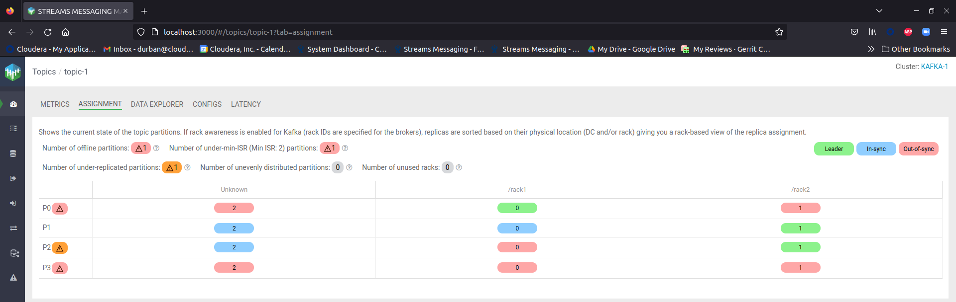 assignment of all partitions. If rack awareness is used in the Kafka cluster, the replica