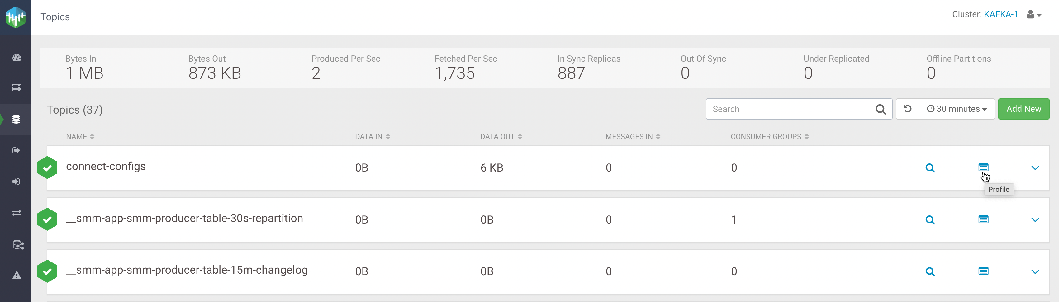 Leader and in-sync replicas also act as links to the corresponding broker details page.