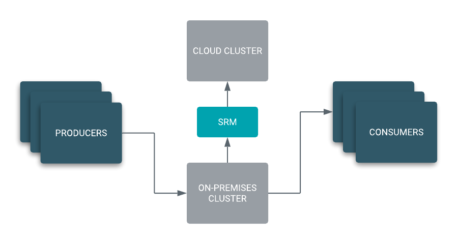 After you have set up replication through Streams Replication Manager, you only need to point your consumers to the new brokers before you can start processing messages from the cloud cluster. This approach ensures that the historical data kept in the on-premises Kafka cluster is migrated to the cloud cluster allowing you to replay messages directly from the cloud without having to go back to your on-premises cluster.