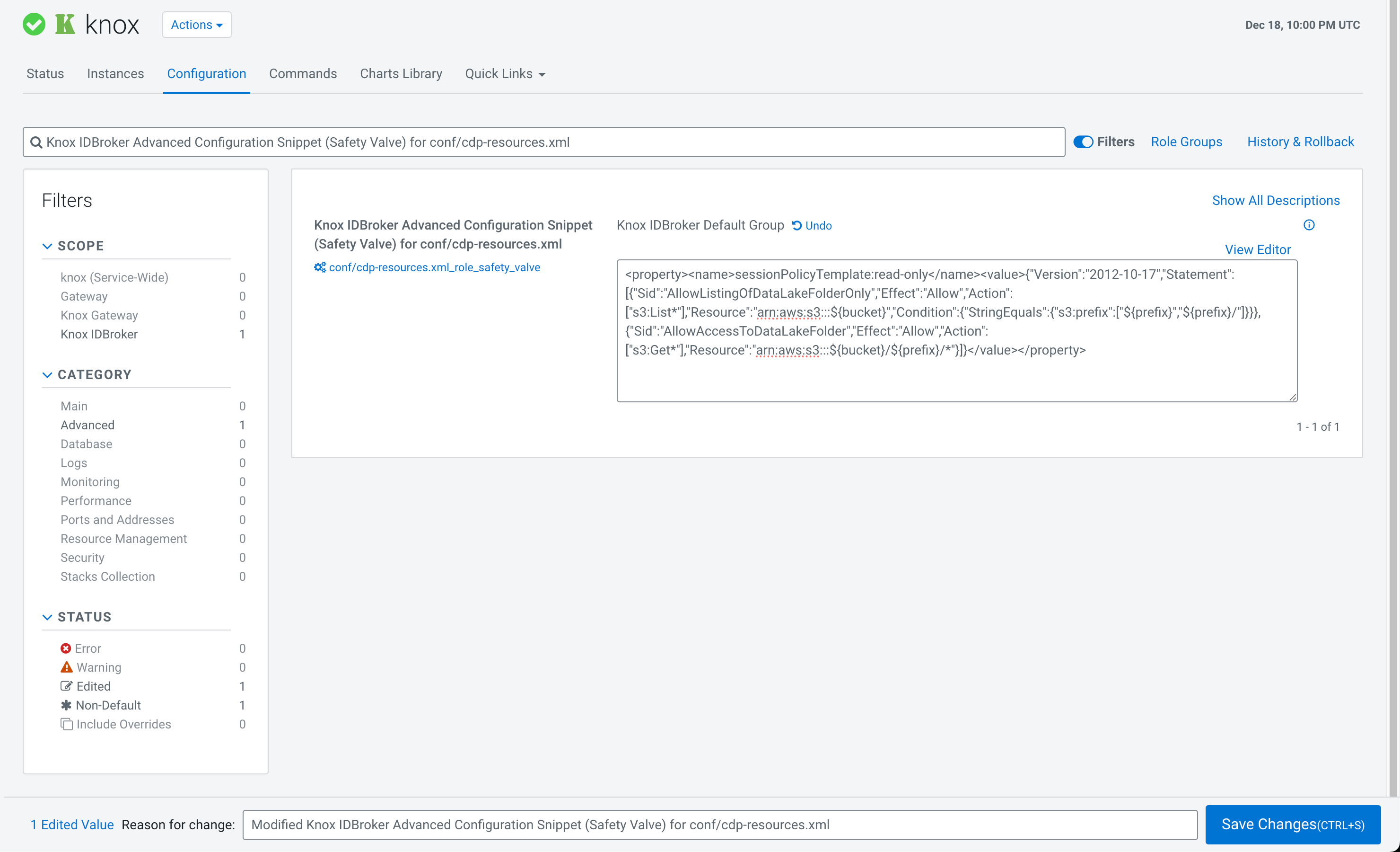 The IDBroker must be made aware of available session policies. Configure these policies using the Cloudera Manager so that they survive restarts, upgrades, and other such events.