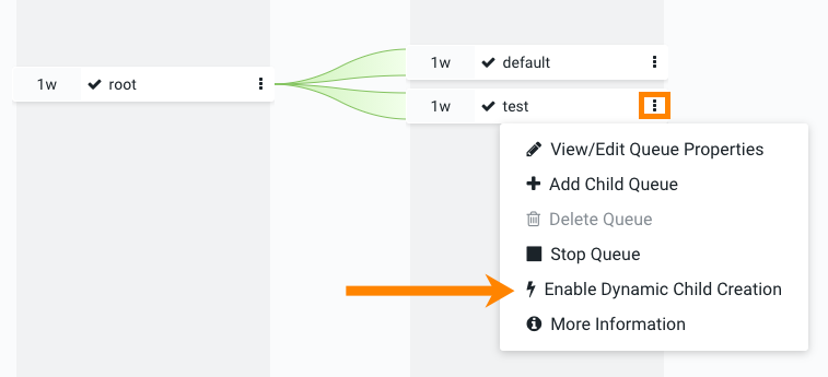 In the weight resource allocation mode, when you enable dynamic child creation for a queue, it becomes a parent queue that can have both static and dynamic child queues. You can enable that feature through the YARN Queue Manager UI.
