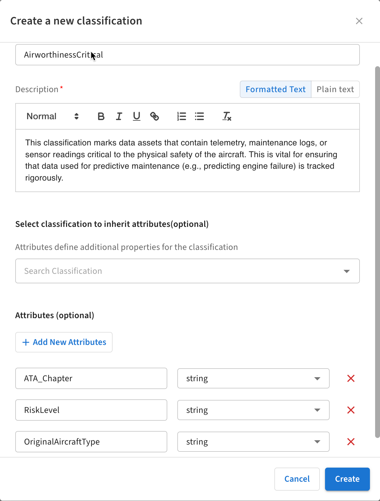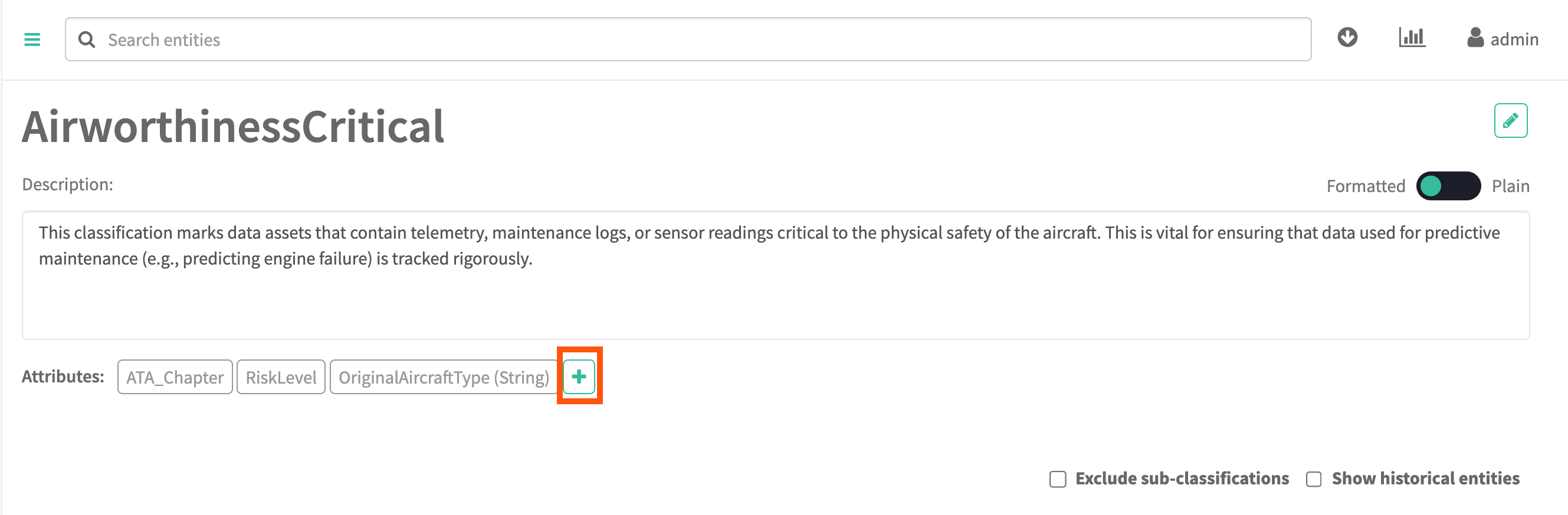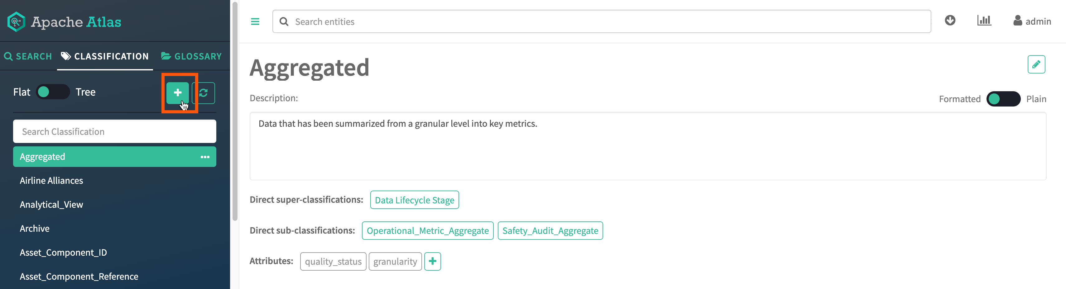 You can also add attributes to an existing classification. Select the classification in the list, then click the plus button next to Attributes.