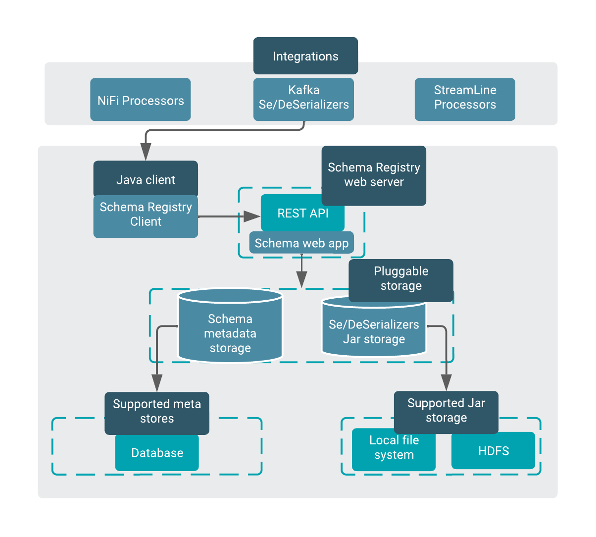 Schema Registry uses the following types of storages: